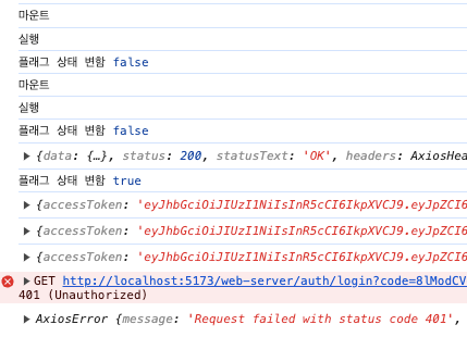 코드 수정: access 토큰 요청 -> 성공시에만 데이터 저장. 요청여부를 플래그 변수로 관리 -> 요청여부가 true일때만 성공/실패 판단