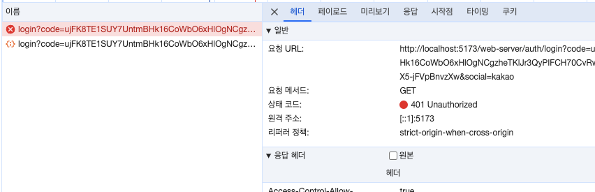 성공시에만 데이터를 저장하기 때문에 두번째 요청의 401 에러는 무시됨